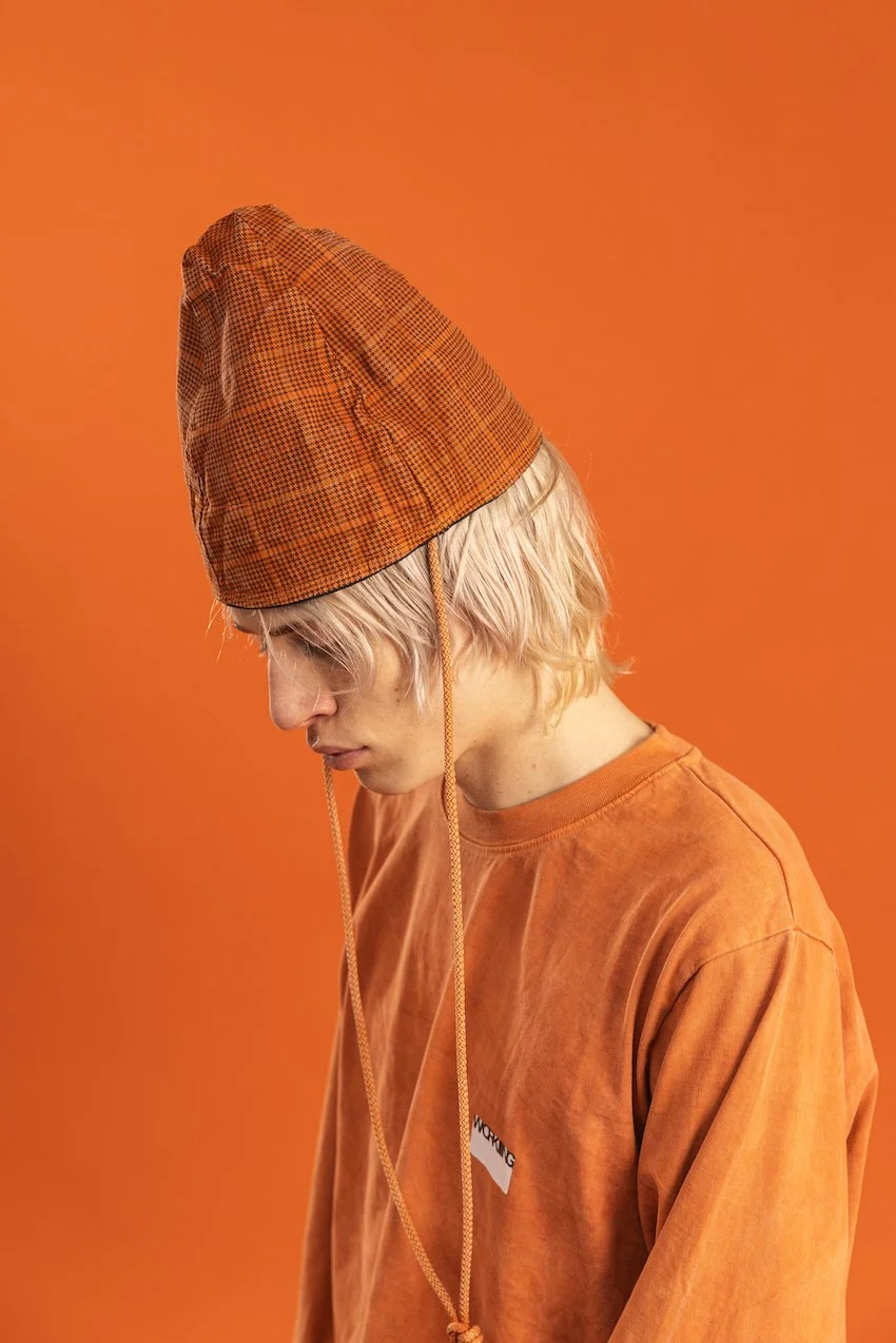 Reversible, with a string - the hat can double as a pouch worn over the shoulder.