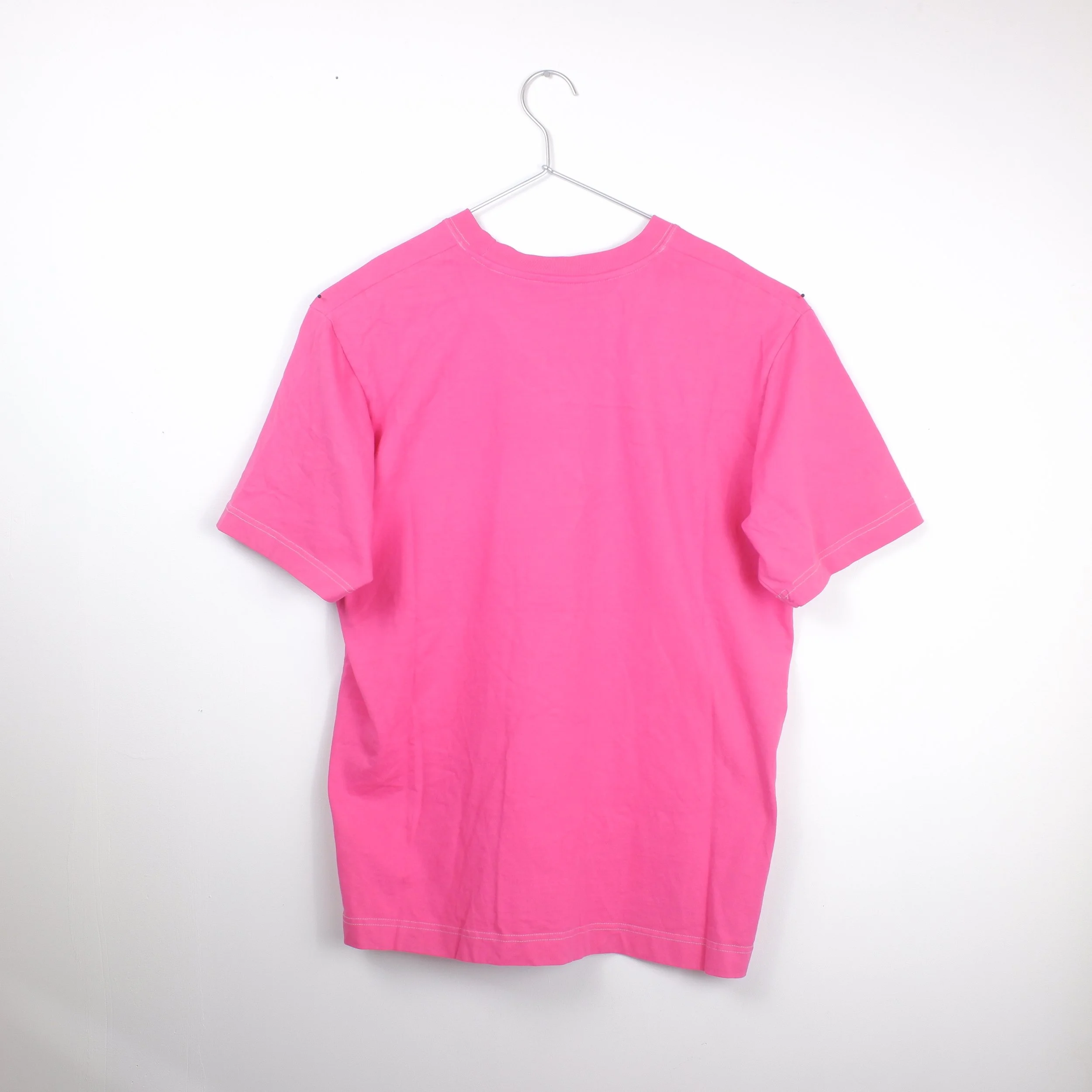 Garment dyed tee in organic cotton, with washable heat-pressed ’sticker’ Working branding at the chest. The dyes react to the cotton fabric only, leaving the synthetic sewing threads undyed,